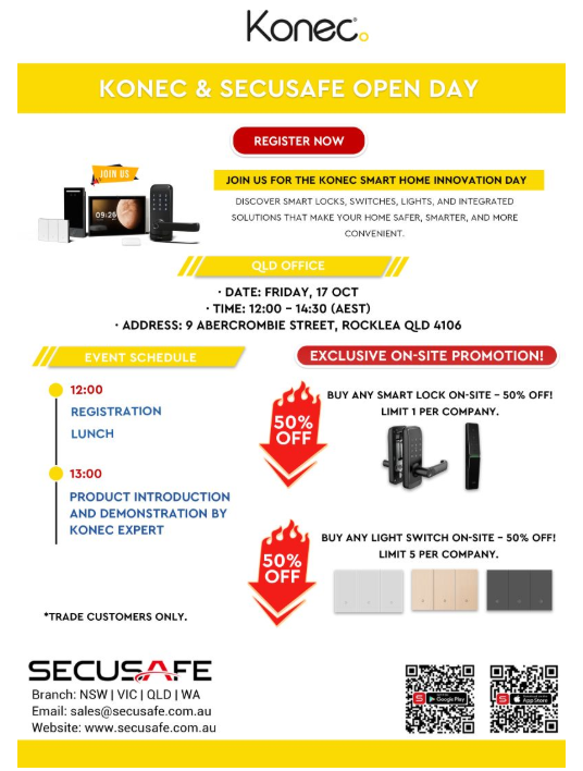 Discover the future of smart living at our Konec Smart Home Innovation Day in our Rocklea QLD branch ...