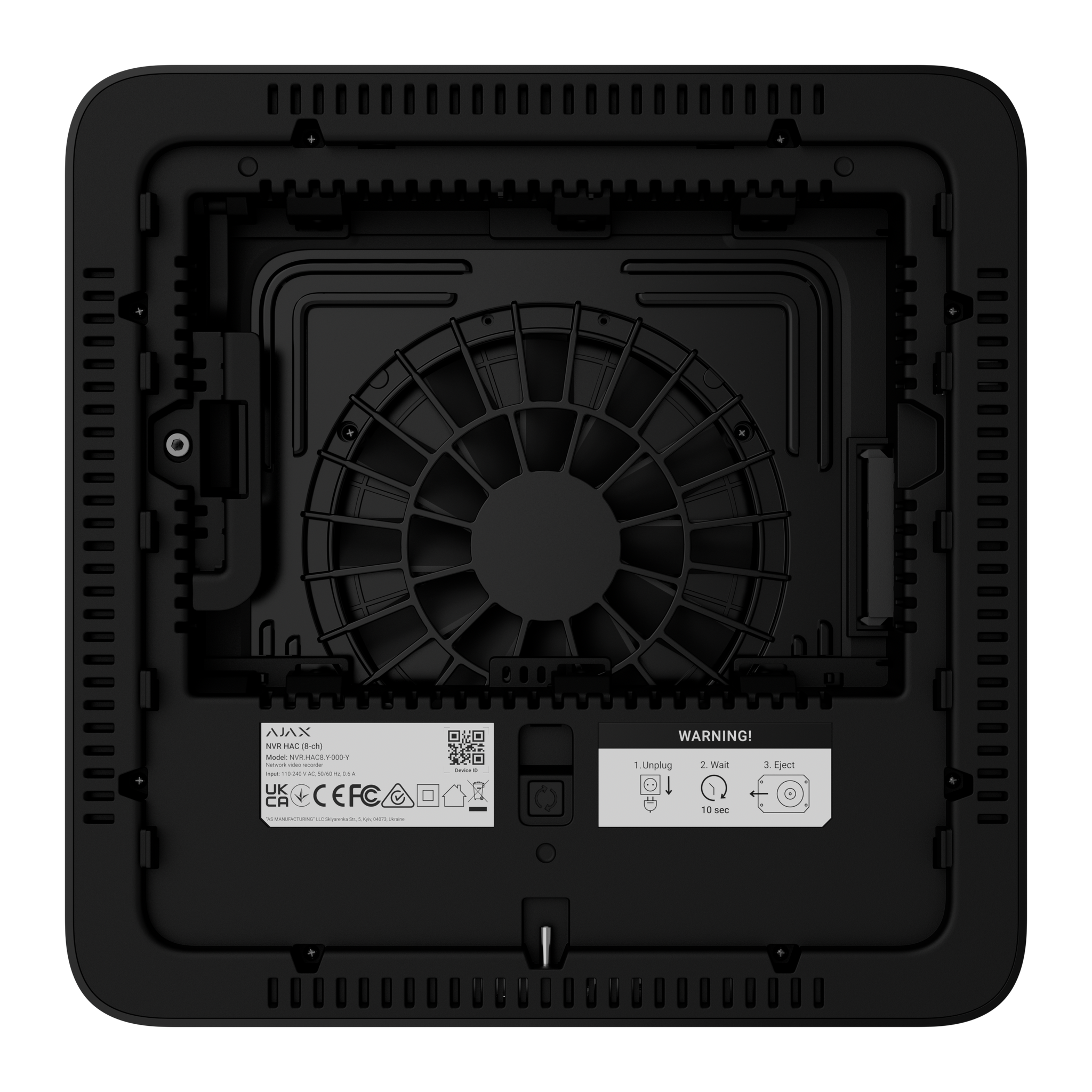 AJAX 8ch Black NVR HAC with HDMI, Up to 8 channels in 4K resolution (25/30 FPS), ONVIF (Profile S/T), RTSP, HDD capacity up to 16TB (SATA 3.5''), bandwidth up to 100Mbps, 2 x USB Type-A HDD NOT included