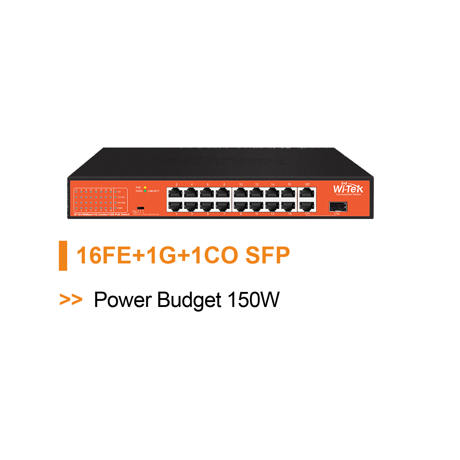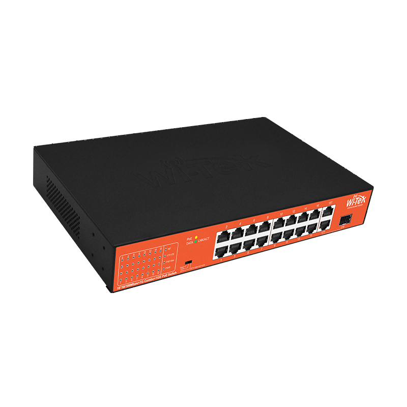 > 16 10/100Mbps PoE ports, 1 Gigabit RJ45 port and 1 Combo port