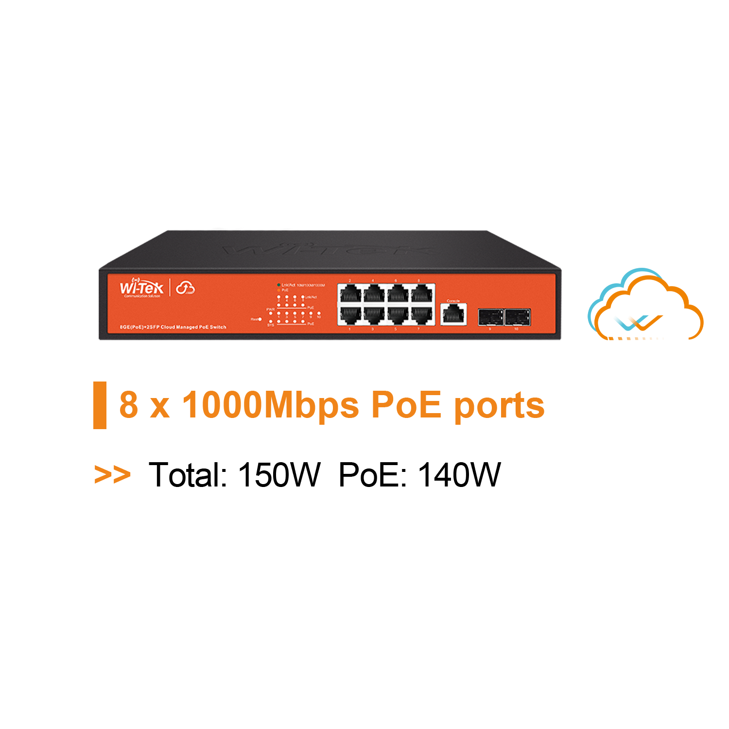 > 8 x 802.3af/at PoE ports with a total power supply of 140W