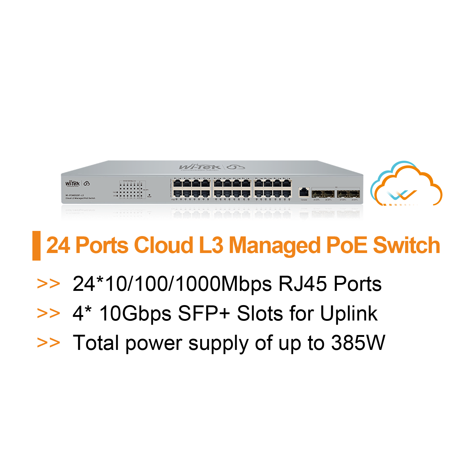 > 24 Gigabit PoE+ RJ45 ports and 4 10Gbps SFP+ Slots